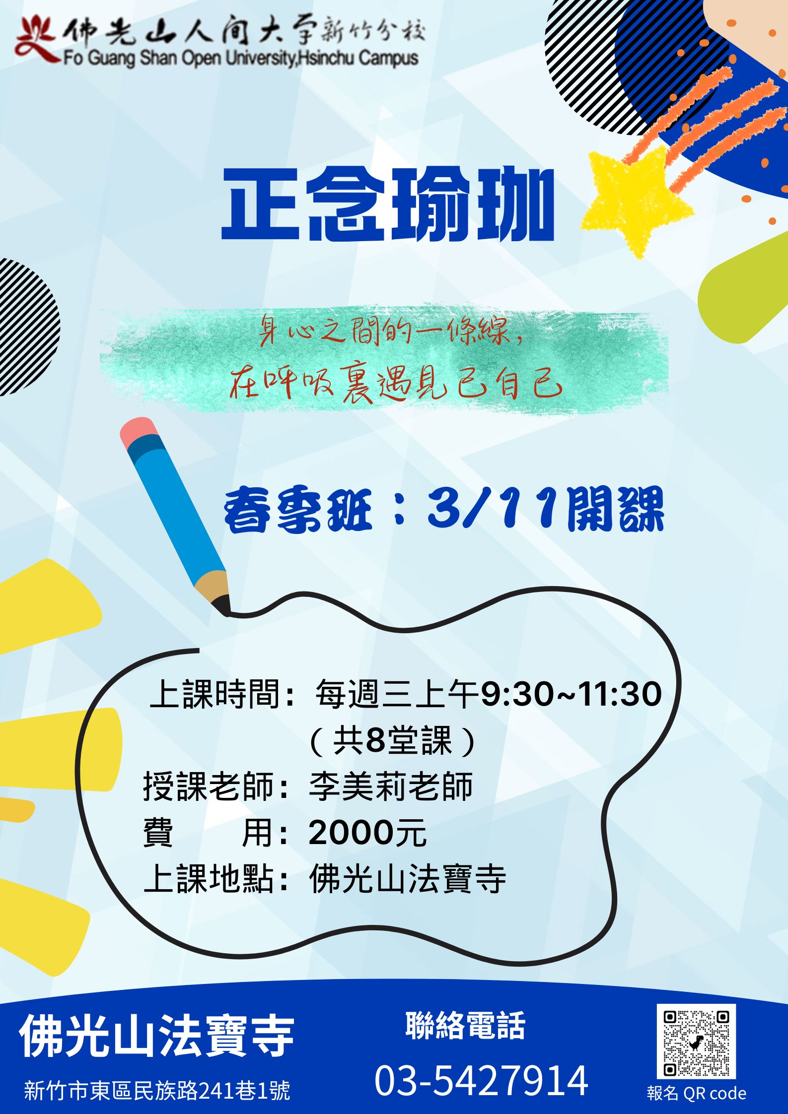 | 課程名稱 | 2026春-正念瑜珈 | |